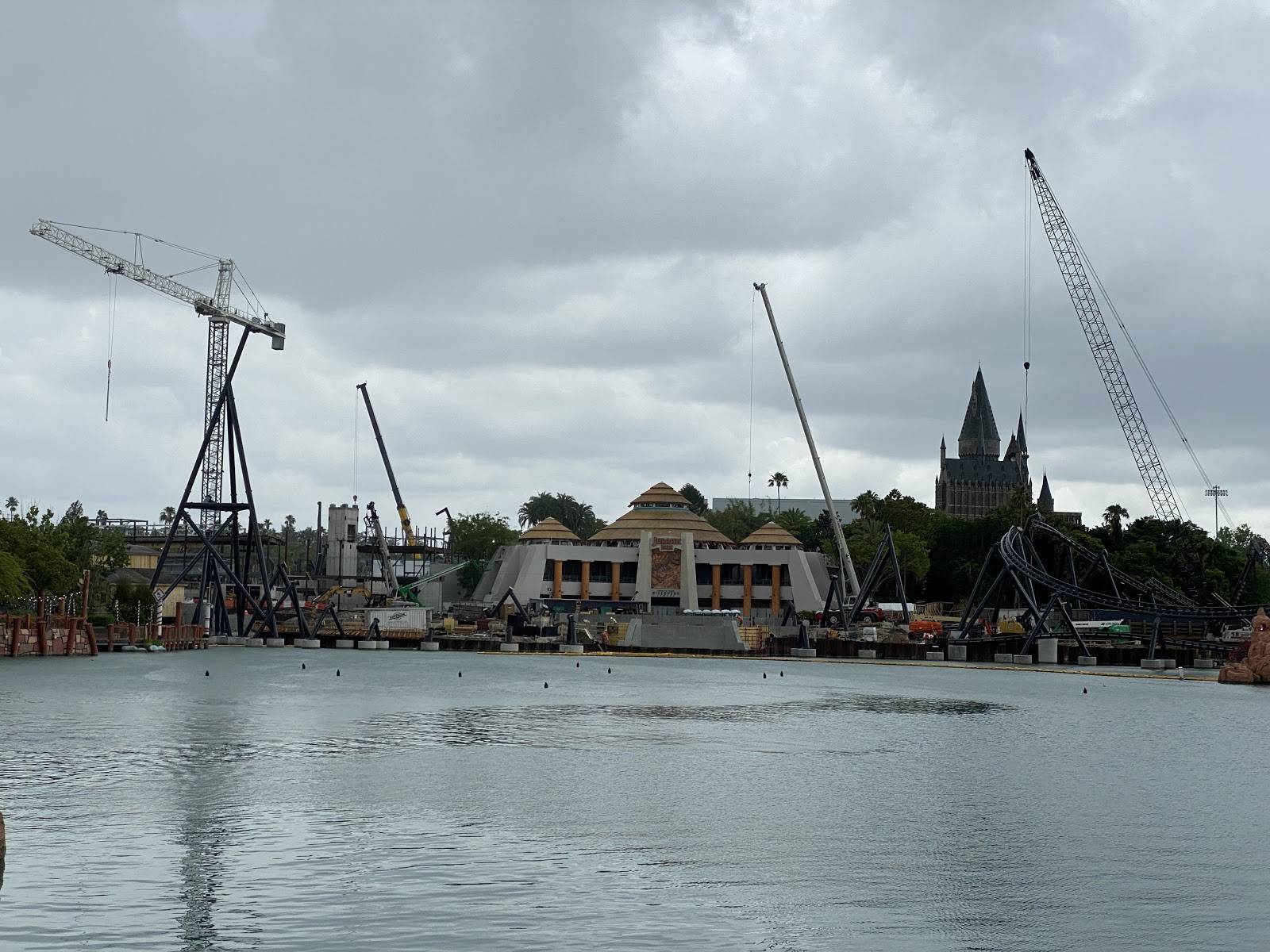 Work progressed nicely during the closure and today’s visit offered some incredible views of what visitors will experience when the unnamed attraction opens in 2021. Most of the visible construction has taken place over the lake in the middle of the park behind the land’s Jurassic Park Discovery Center. The Coaster appears to go over the bridge that connects The Wizarding World of Harry Potter to Jurassic Park. You can see all of our photos in the gallery below.