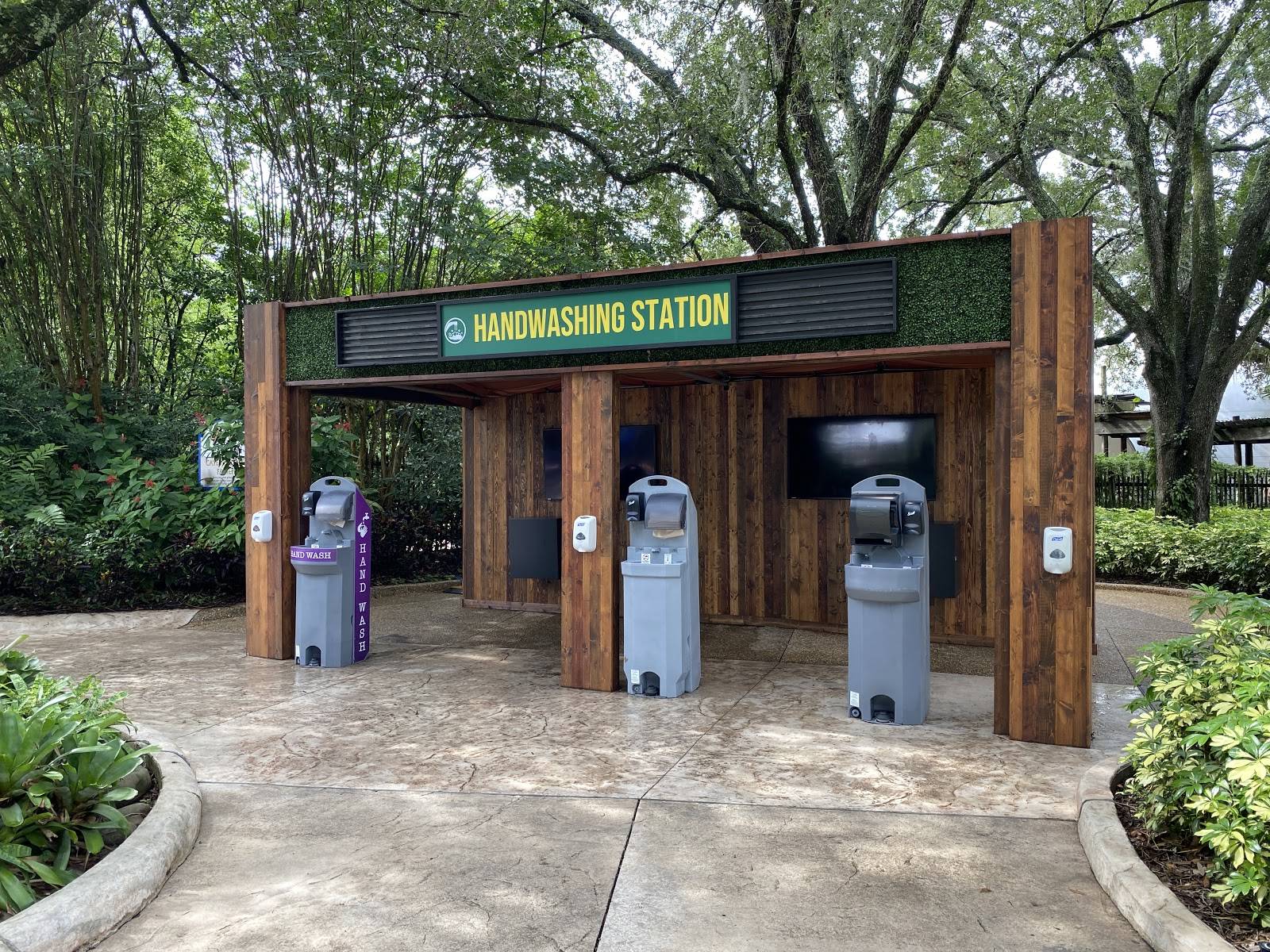 In addition to hand sanitizing stations, the park also has some pop-up handwashing stations.