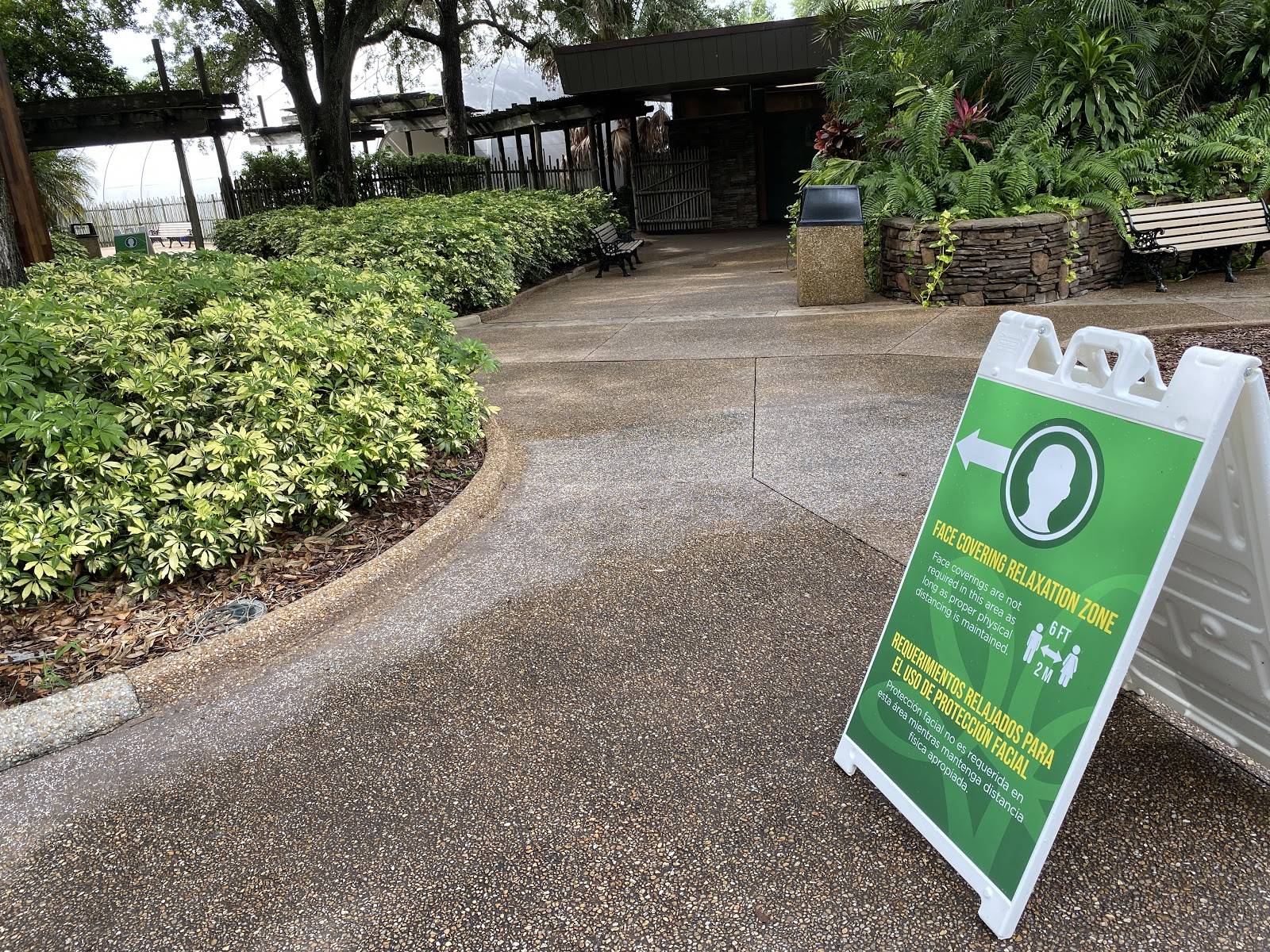 Visitors can take a break in one of two face covering relaxation zones where it’s okay to remove your face covering.