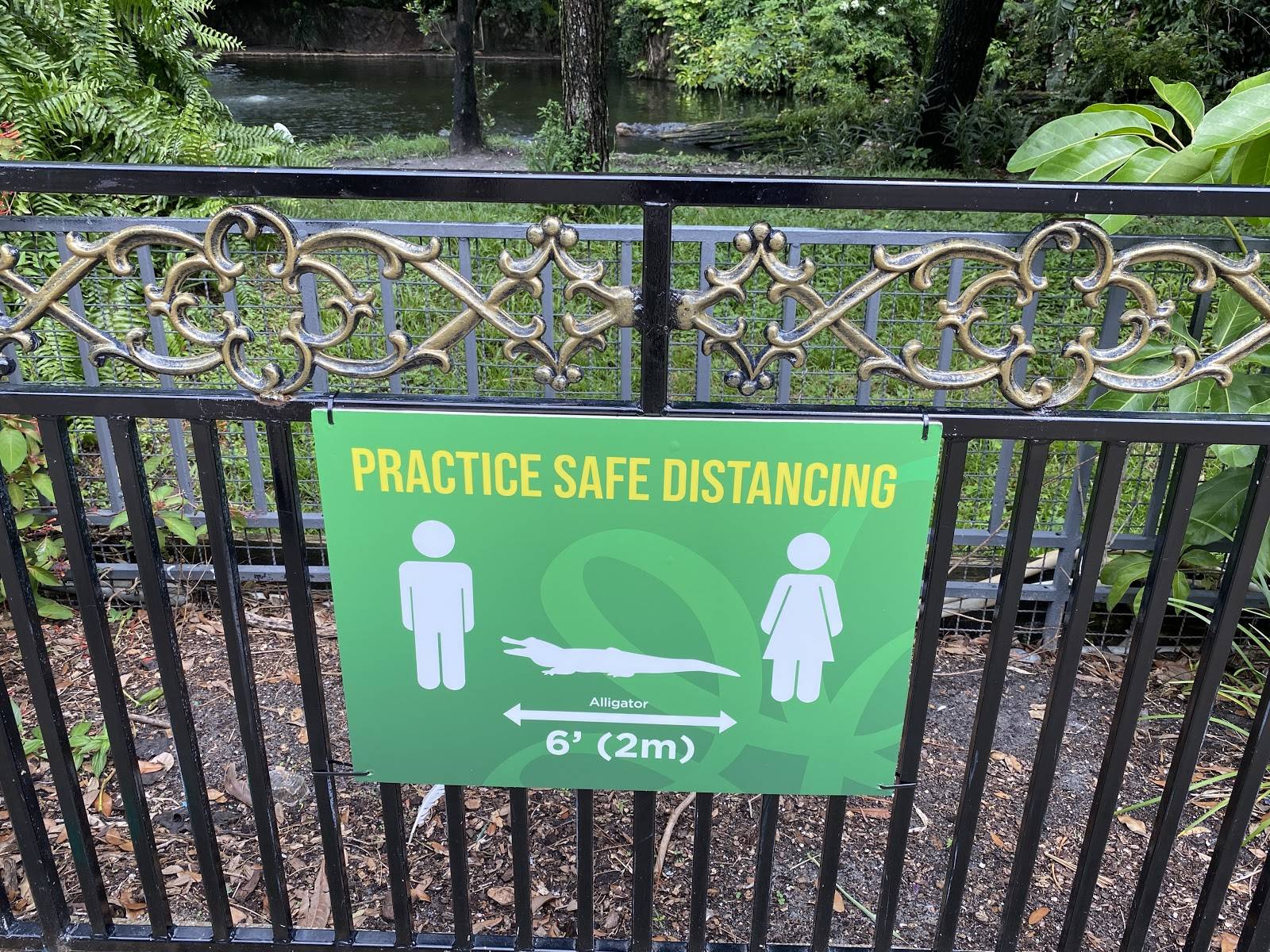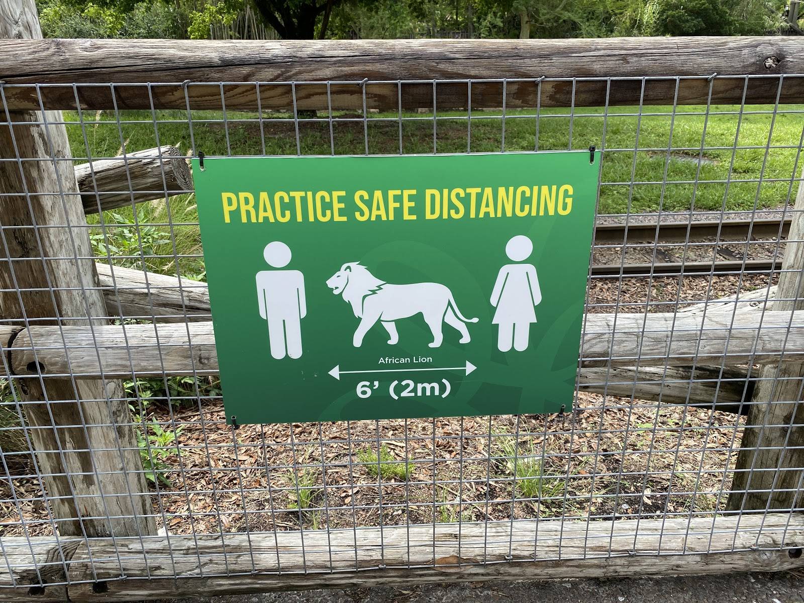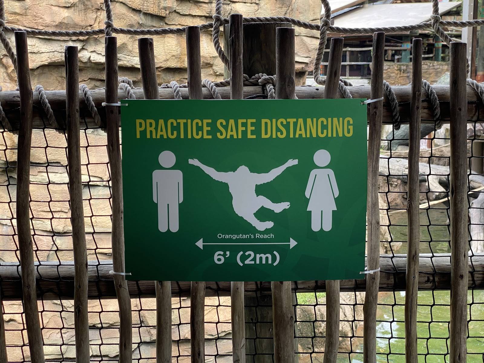 Busch Gardens uses clever signage to remind visitors to stay 6-feet apart by showing the length of various wild animals and the wingspan of an ape.