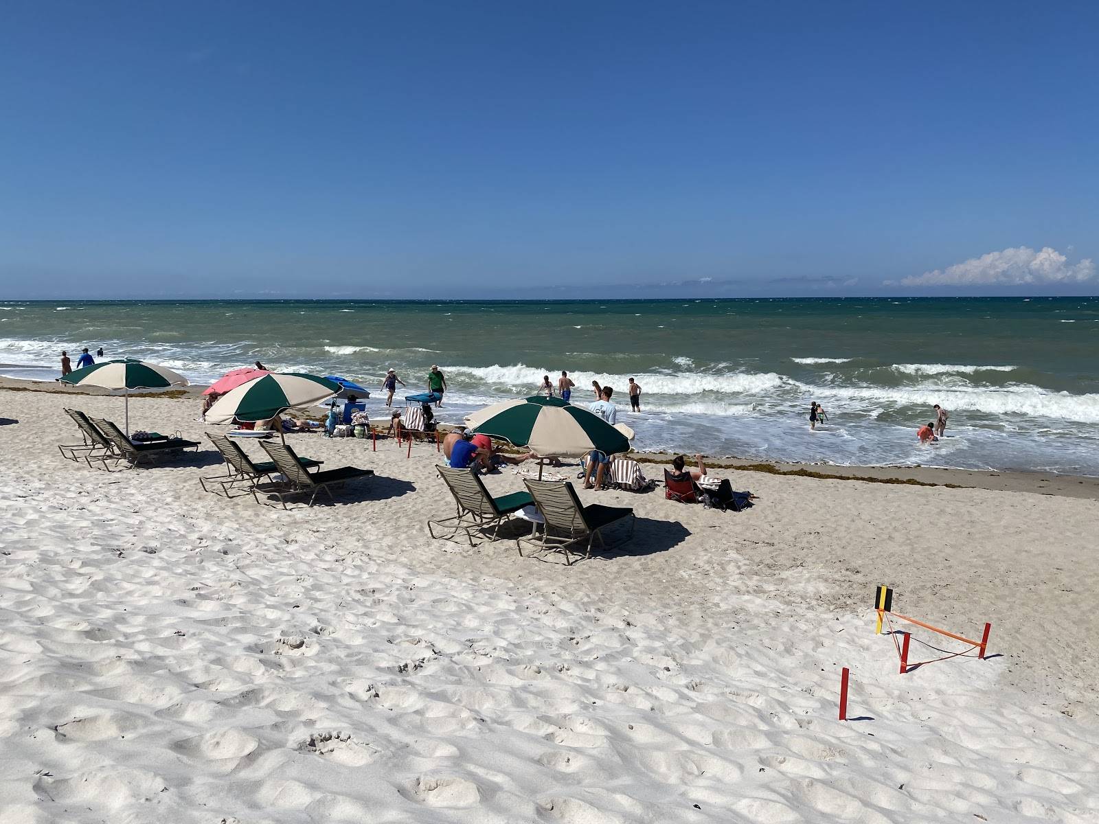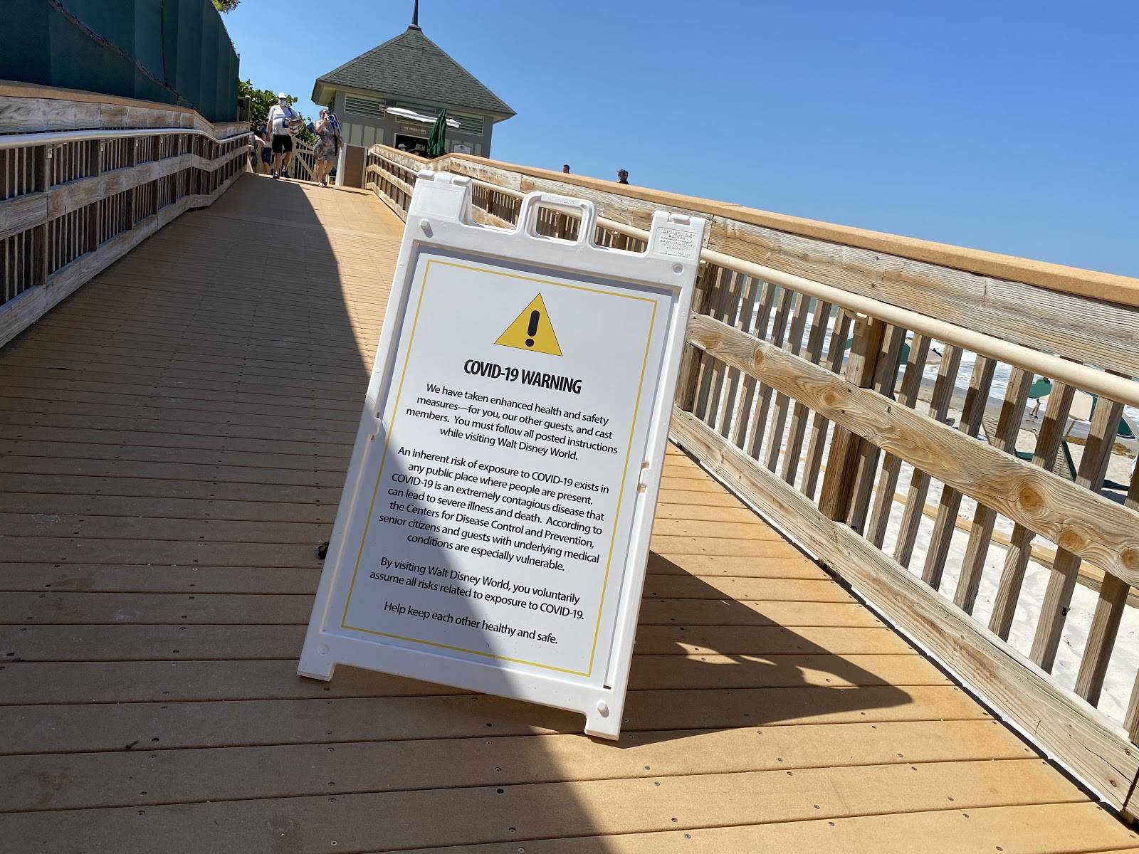 Signs informing guests of COVID-related safety precautions can also be found on the walkway to the beach.
