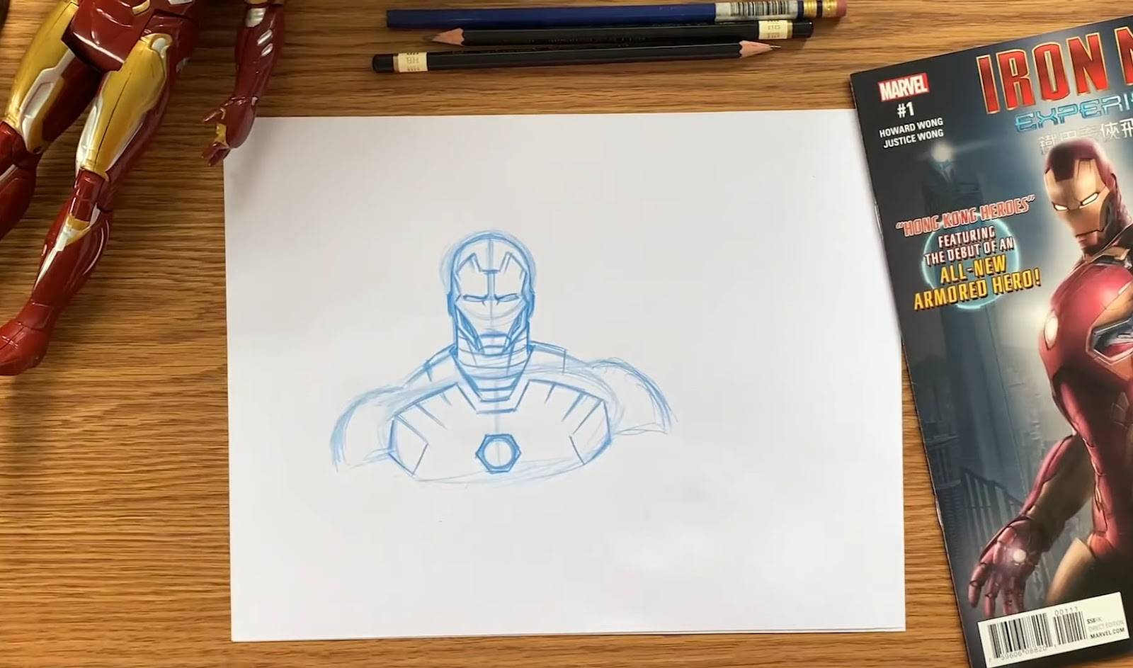 - Along with teaching us how to draw the famous Marvel Hero, Crosby also shares little tidbits about the Iron Man Experience in Tomorrowland at Hong Kong Disneyland. He also teaches us how to flourish our drawings with a landmark from the attraction.