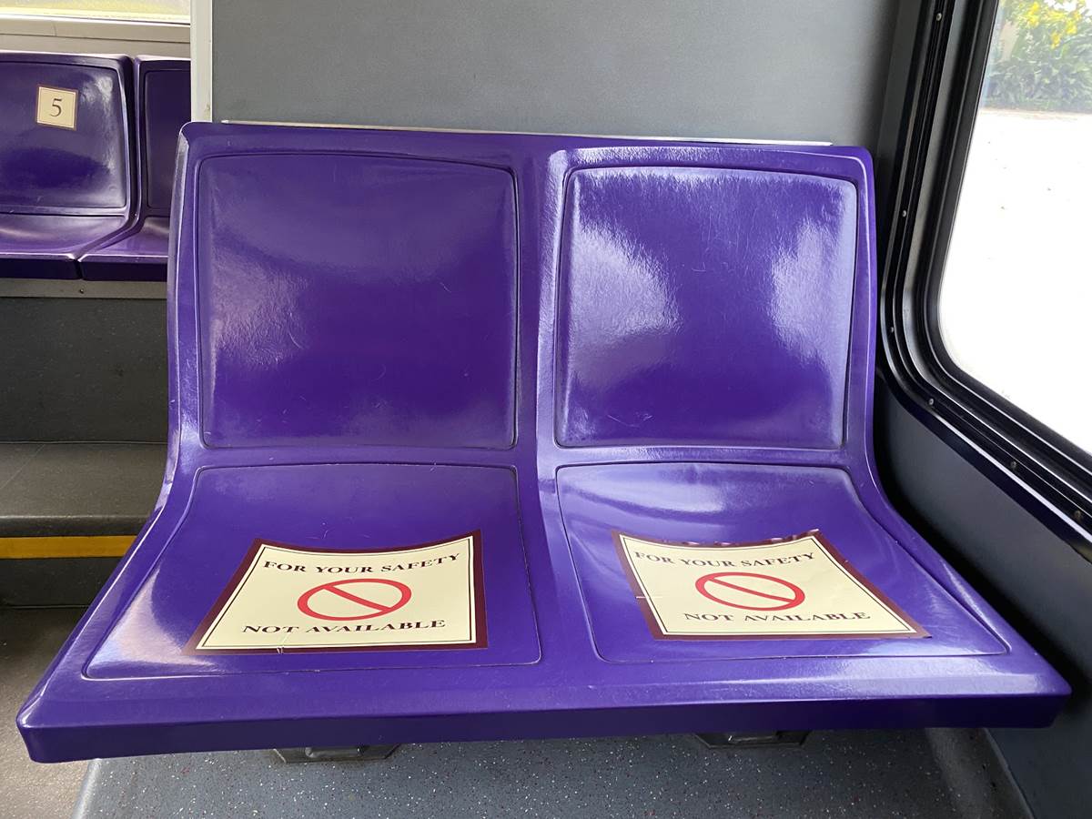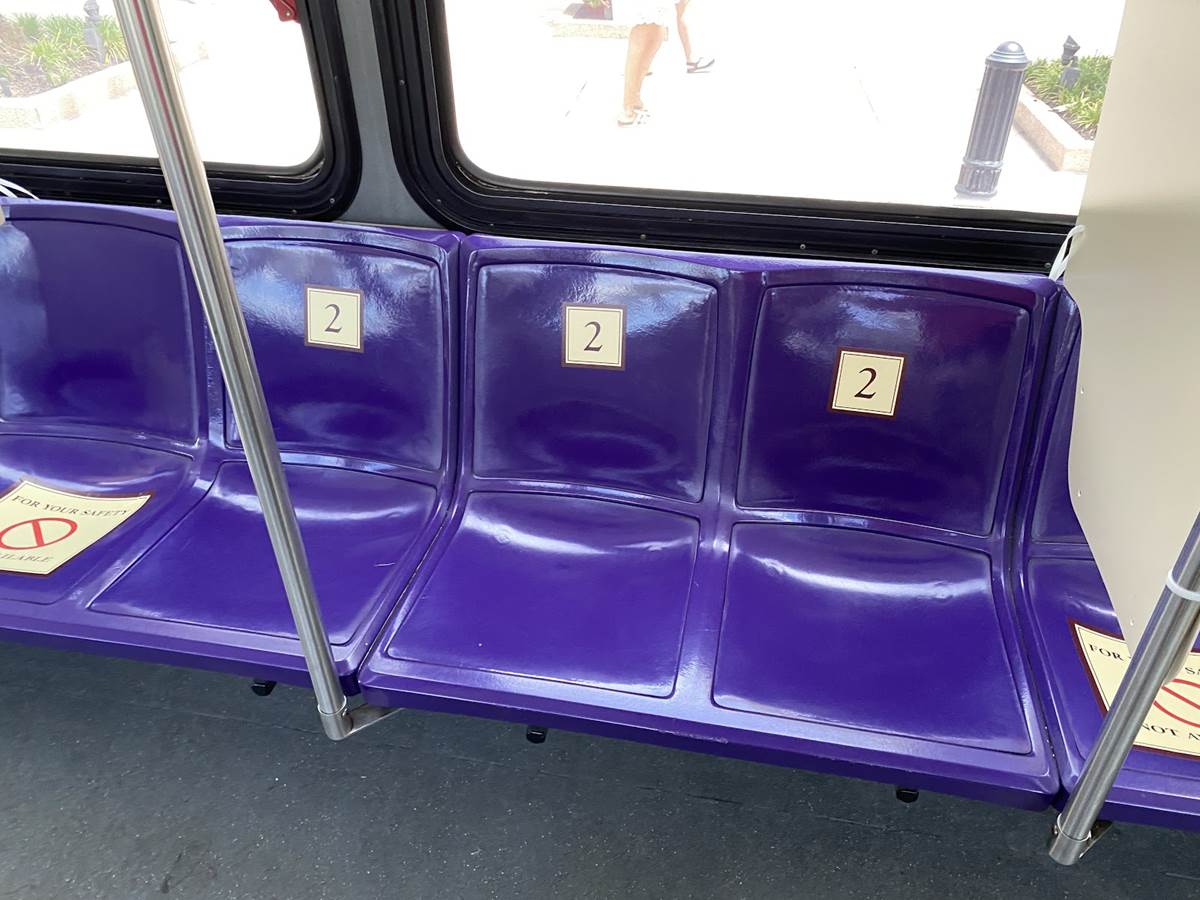 - Once on board, guests will find several seats marked off to not be used, with the remaining seats numbered for seating assignments.