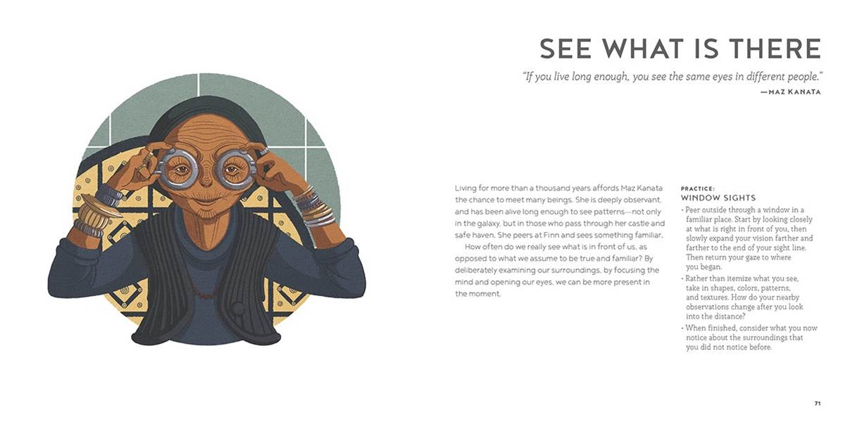 - Author Amy Ratcliffe: “My wish is that readers find at least one practice to help them savor a moment. To experience it fully. Because mindfulness isn’t about zoning out, it’s about tuning in with all our attention. And to readers unfamiliar with mindfulness, my hope is that framing practices in the context of Star Wars will encourage them to take their first steps into a larger world.”