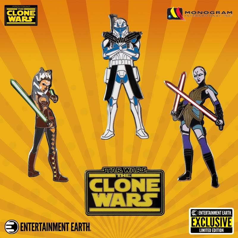 - Monogram International’s summer convention exclusive Star Wars: The Clone Wars 4-piece pin set is now available online exclusively from Entertainment Earth.