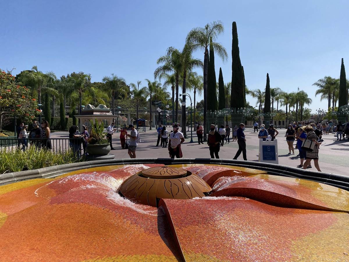 While some Guests were trying to park, a line had already formed to enter the shopping and dining district. Guests were first held along the perimeter of Disney’s Paradise Pier Hotel before being escorted closer to the security and temperature checkpoint.
