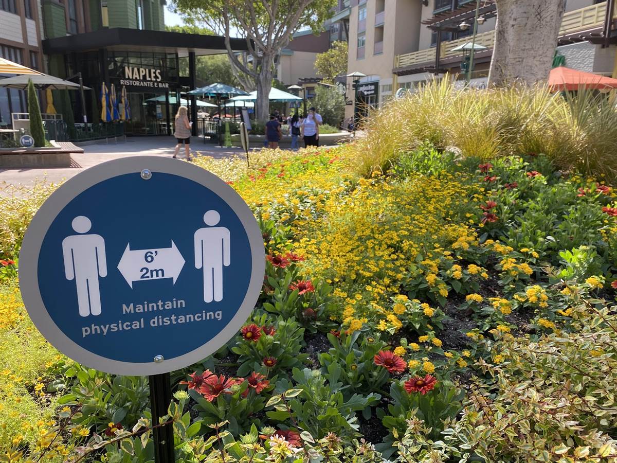 Signage begins on A-Frames reminding Guests of the new safety procedures, which include mandatory face coverings, a temperature screening, and keeping their distance from other groups.