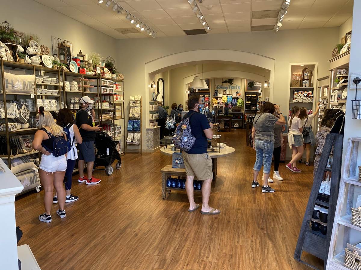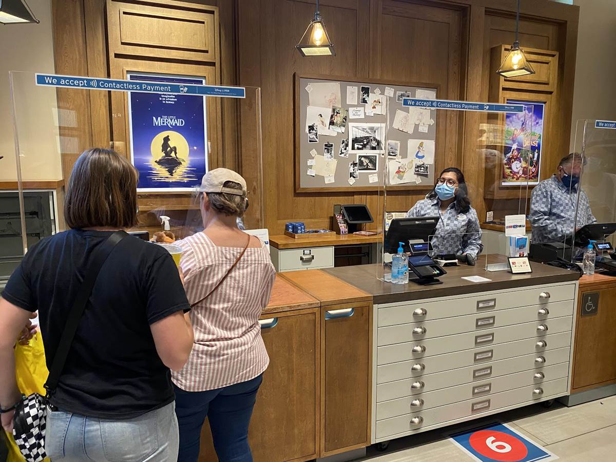 Similar to the World of Disney at Disney Springs, checkout has been enhanced with a social distance queue and plexiglass barriers separating Cast Members from Guests.