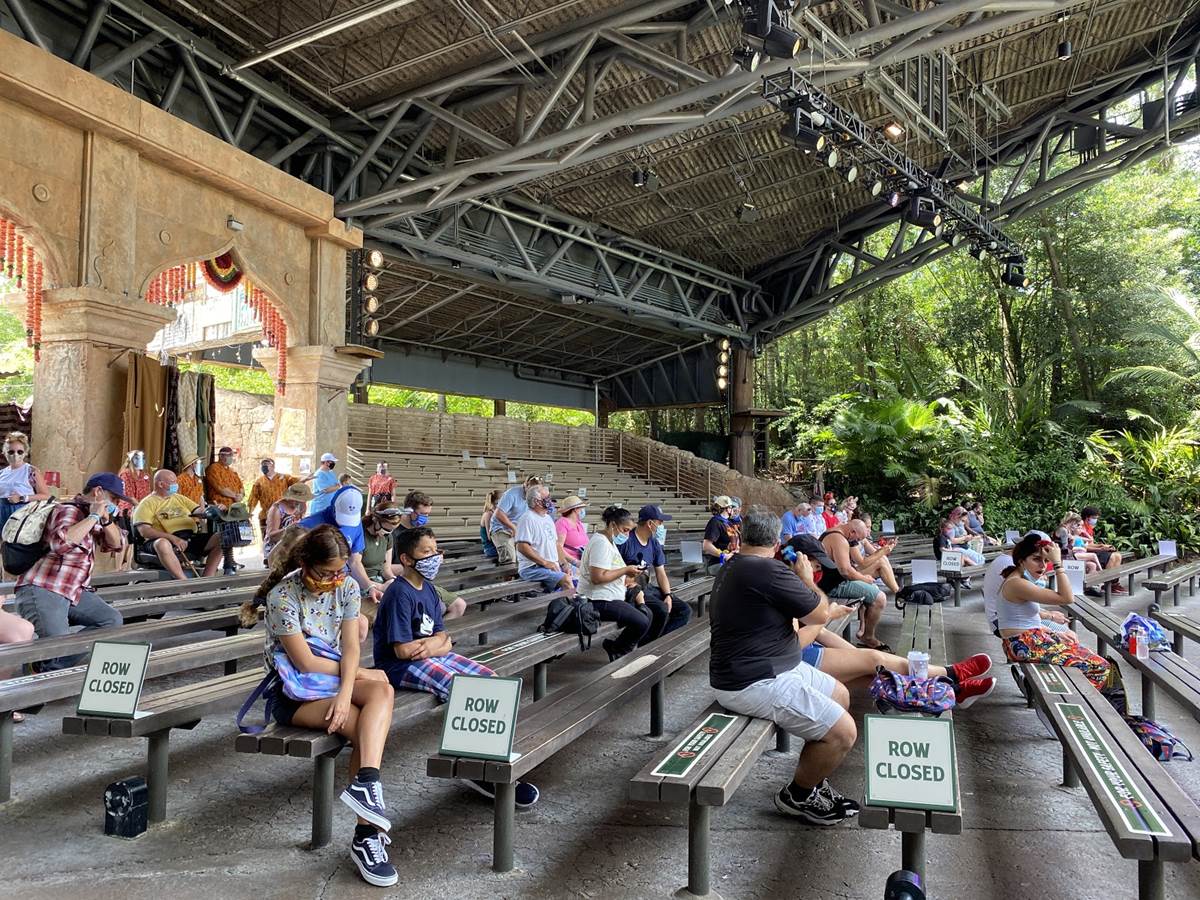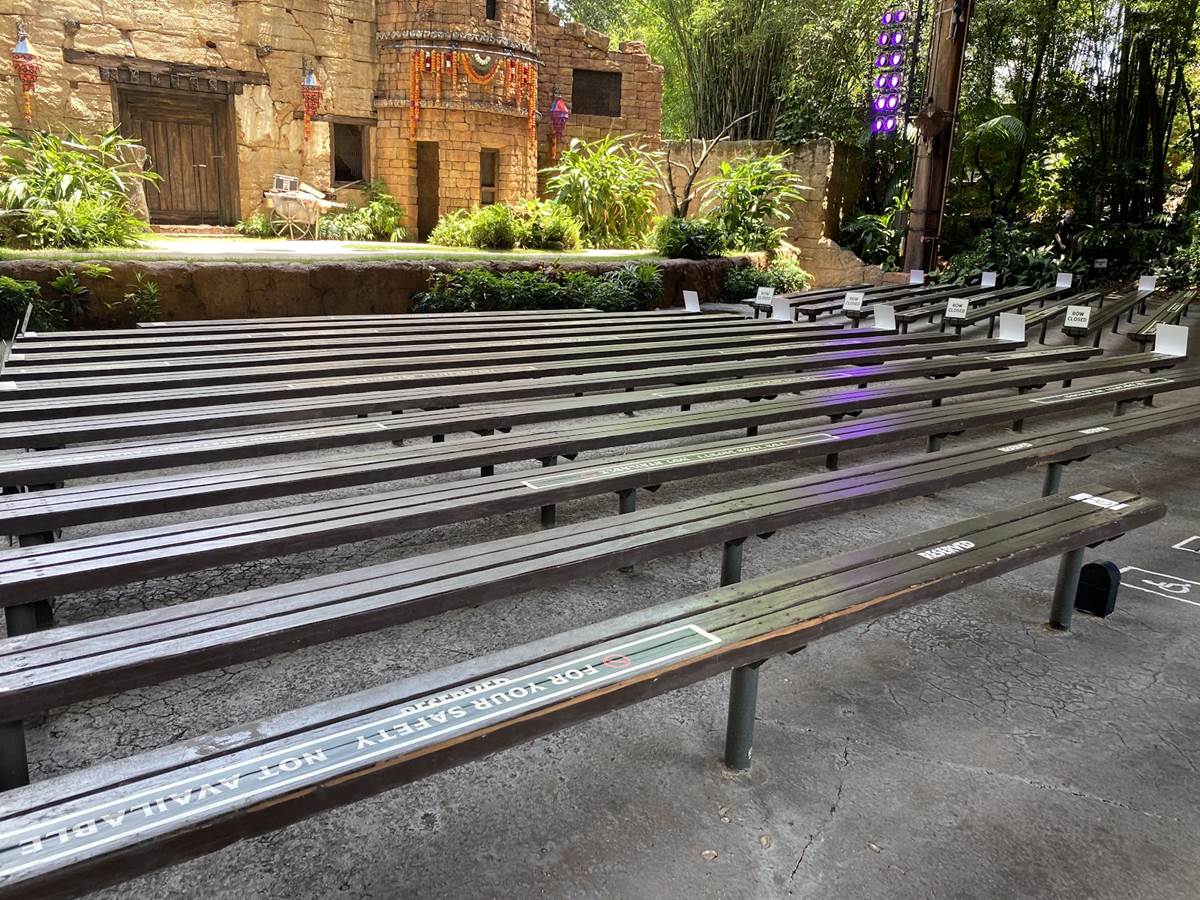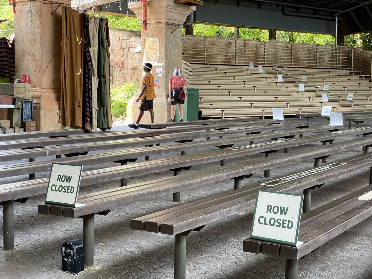Like other theater experiences, the bench seating seats every-other-row with blocked spaces to parties six-feet apart in all directions.