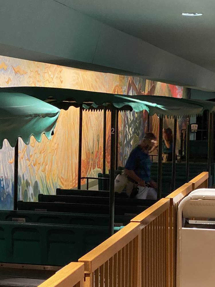 Attraction vehicles get sanitized regularly, with the process visible to Guests at Living with the Land.