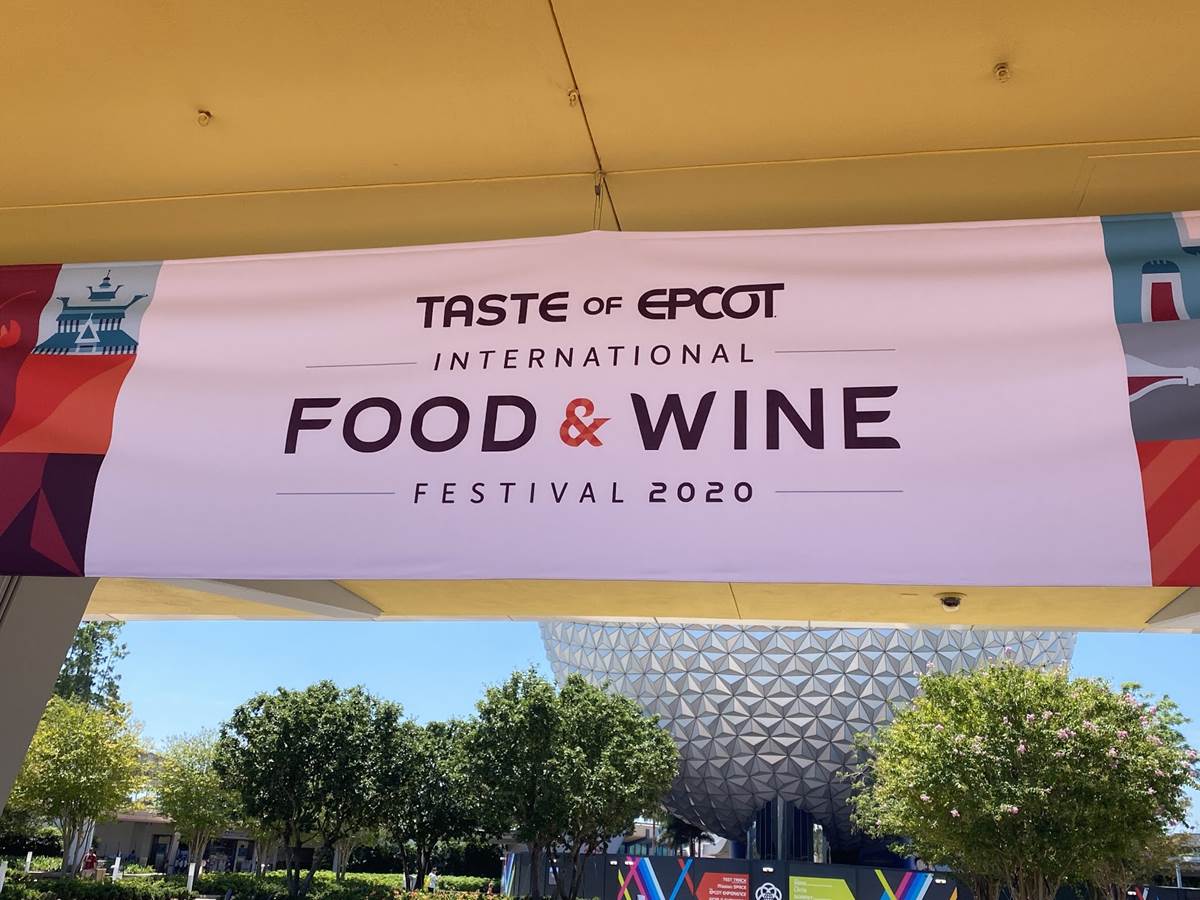 The first promotion for the Taste of EPCOT International Food & Wine Festival starts with banners above the main entrance, although the decorations don’t start until after you pass around Spaceship Earth.