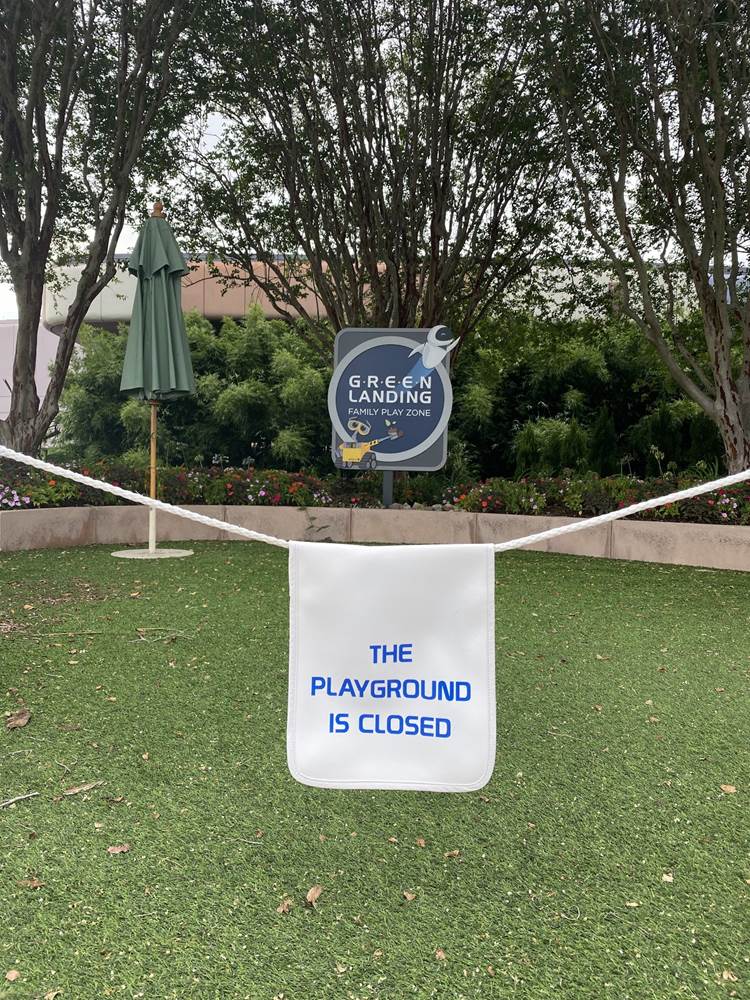 A WALL-E themed play area is still set up from the Flower & Garden Festival, but it is closed off.