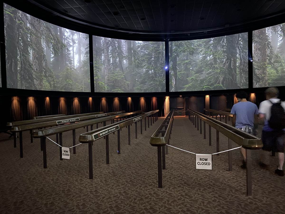 One of EPCOT’s newest attractions, Awesome Planet, includes a social distance queue through the wall carpet holding area.