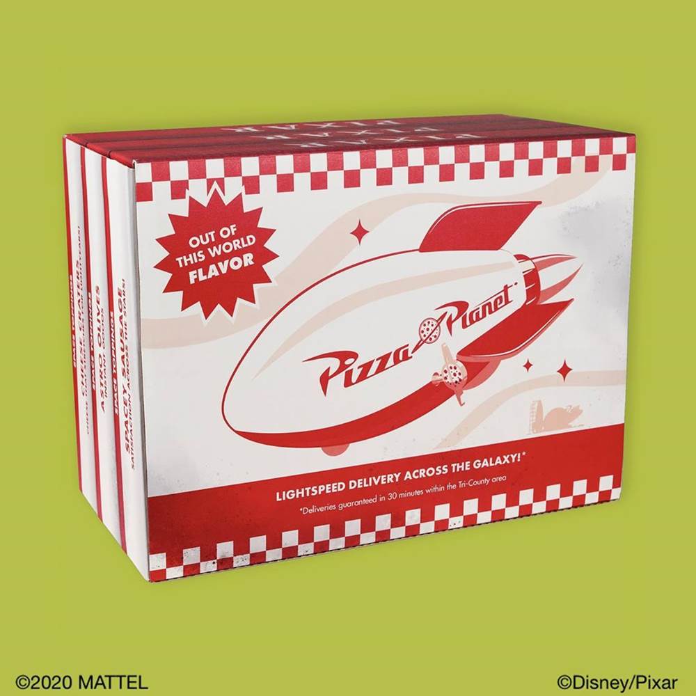 ooooOOOOOoooooo! This Pizza Planet box features a Little Green Man from Toy Story in a Pizza Planet delivery costume. The set also includes a cardboard Pizza Planet truck that the figure can sit in.