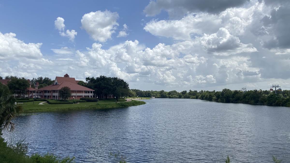 For those not familiar with Disney’s Caribbean Beach Resort, the resort is spread across a huge expanse of land, and divided into “villages” based on an island, like say, Jamaica or Aruba. We were able to walk around Barefoot Bay, the resort’s main lake, on a path that is also marked as their running trail, though not all the facilities and amenities were open at this time. Notably some of the quiet pools were closed (possibly due to that “village” not being in operation), as well as the playground on Caribbean Cay.