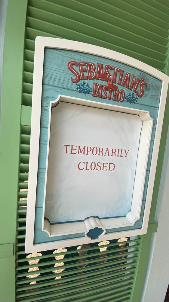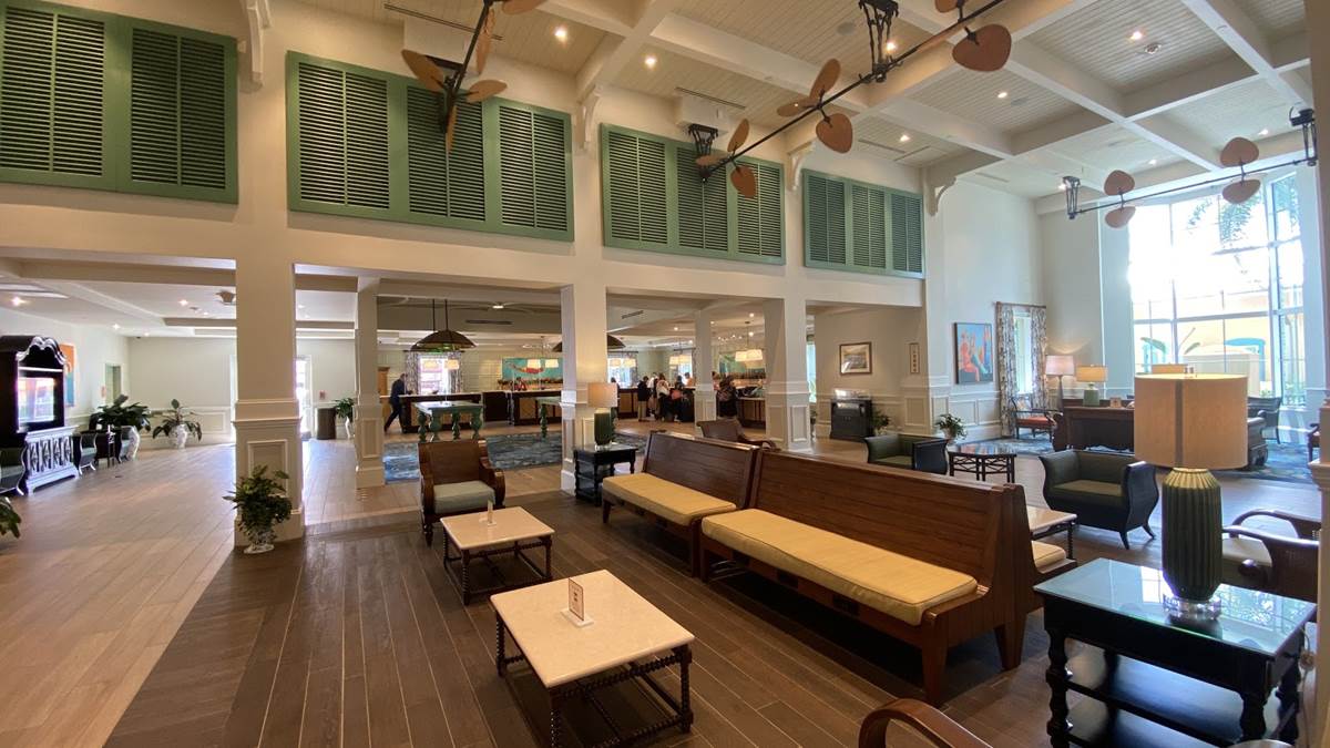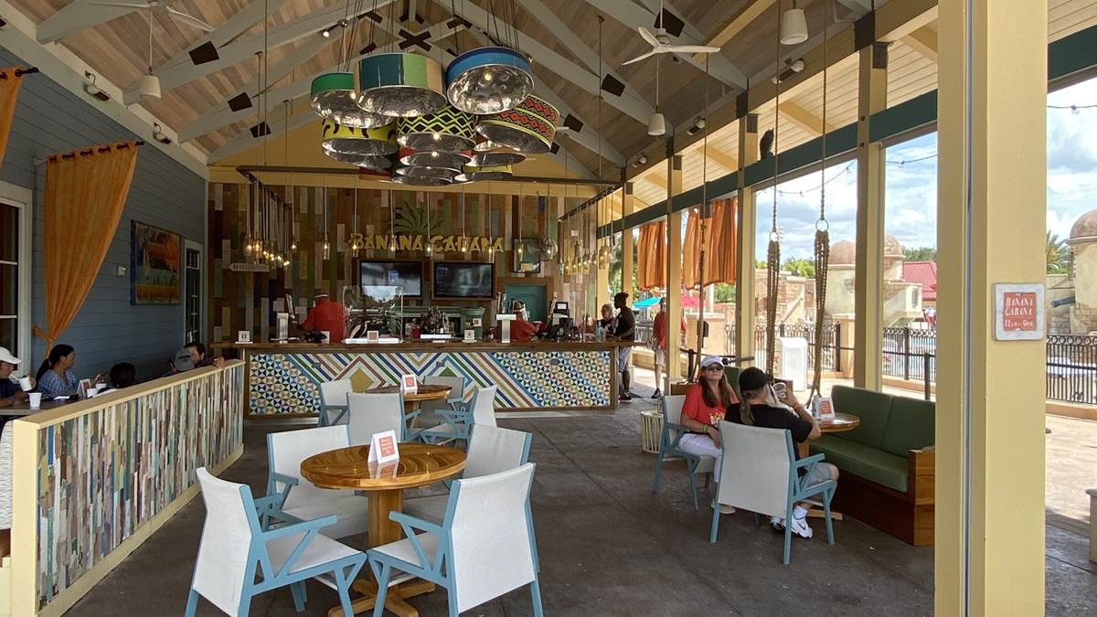 The main building, Old Port Royale, is now the central location for most everything at the resort, including the lobby, which was once in a separate building near the former entrance of the resort (current site of Disney’s Riviera Resort). The Centertown Market is available in this building, though it is Mobile Order only. All digital menus have been replaced by a QR code. Nearby, the Banana Cabana lounge is open as well, with spaced seating. However, Sebastian’s Bistro is unavailable at this time.