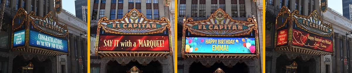 - The historic theater is offering you the chance to order a personalized marquee graphic to be featured on the world famous El Capitan Theatre marquee on Hollywood Boulevard!