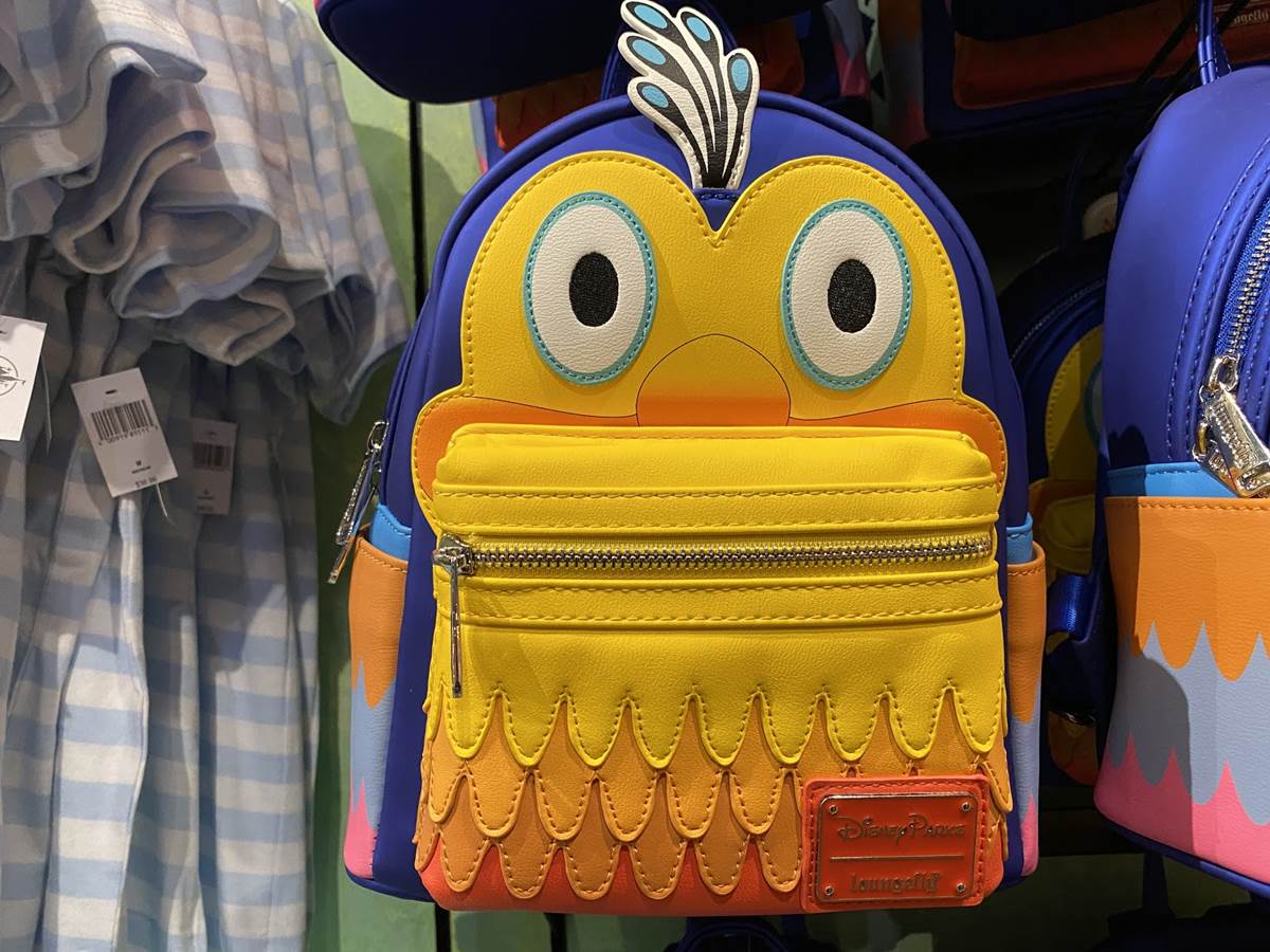 Coming full circle, we find another Loungefly bag, this one featuring Kevin’s likeness. Again, the same size as most of the Loungefly bags found around the parks and elsewhere, with a feathered pattern on the front pouch. This bright and colorful bag is also $80.00