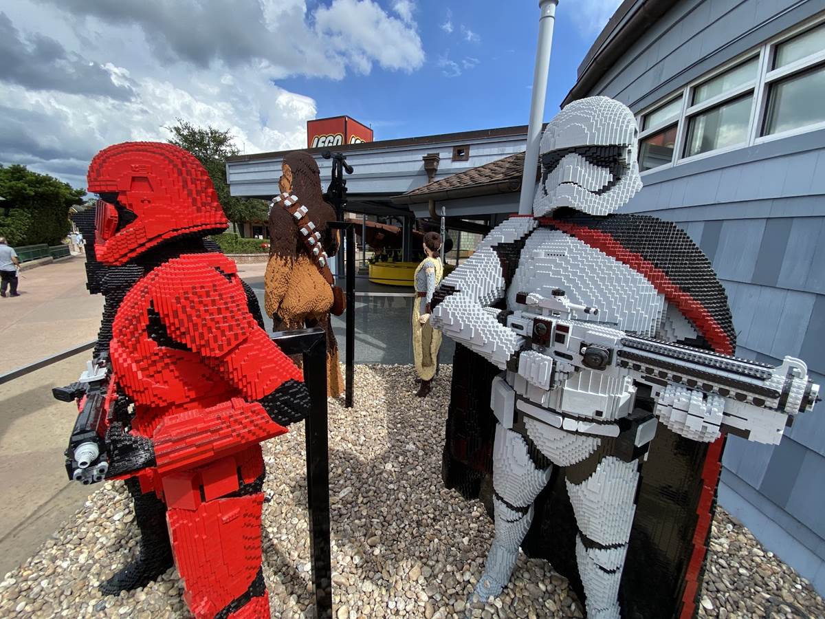 The LEGO Store at Walt Disney World’s Disney Springs has surprised us with several new sculptures outside of the retail experience in the Marketplace.