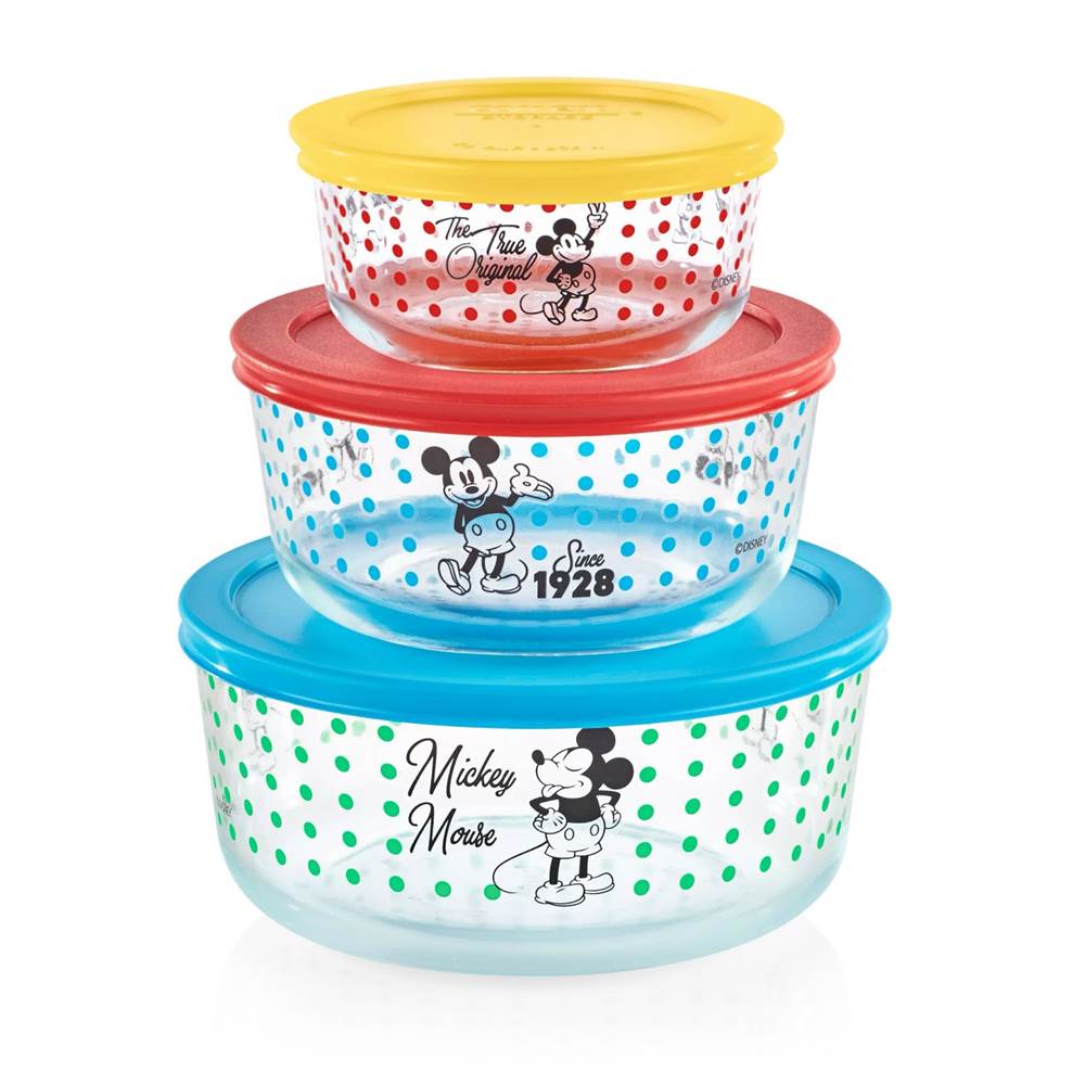 Corelle dishware has released a new collection of Mickey Mouse themed items, celebrating the iconic character’s image through the years. The line includes salad plates, appetizer plates, and decorated storage containers. You can shop the full collection below.