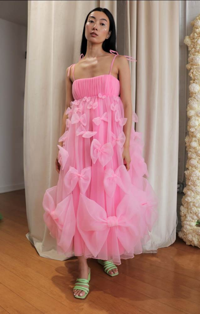 “Green pastures, pink skies, glass slippers, magic castles and make believe at the stroke of midnight. We believe in fanciful fairy tales, princess gowns and dressing up even if we're going nowhere. Our latest collection is full of enchanted wanderlust. Whether dancing on a cloud in our Pink Skies dress or making a wish in our Glass Slipper gown, some dreams are meant to be lived to the fullest in real life.”