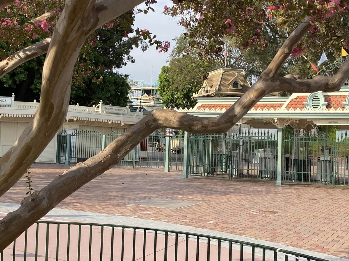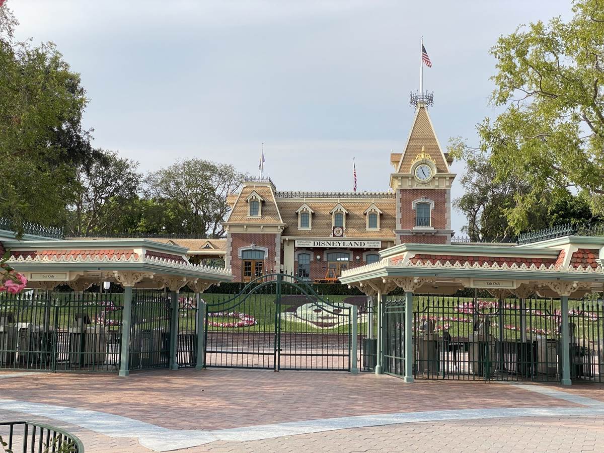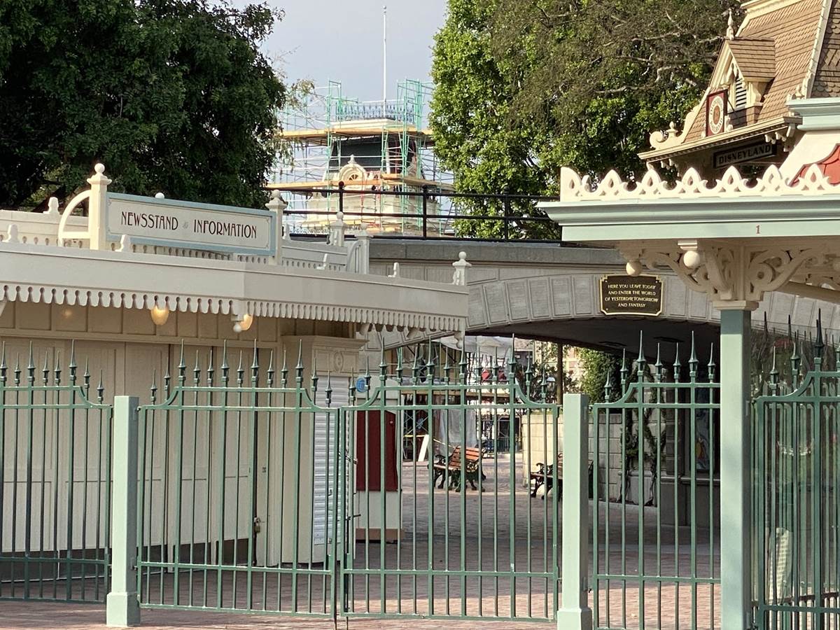 As you approach Disneyland Park, ropes and barriers prevent guests from getting too close to the gates of Walt Disney’s original Magic Kingdom, but in the distance we can see some work being done as scaffoldings adorn some buildings on Main Street U.S.A. hopefully keeping everything nice and pretty for when the parks reopen.