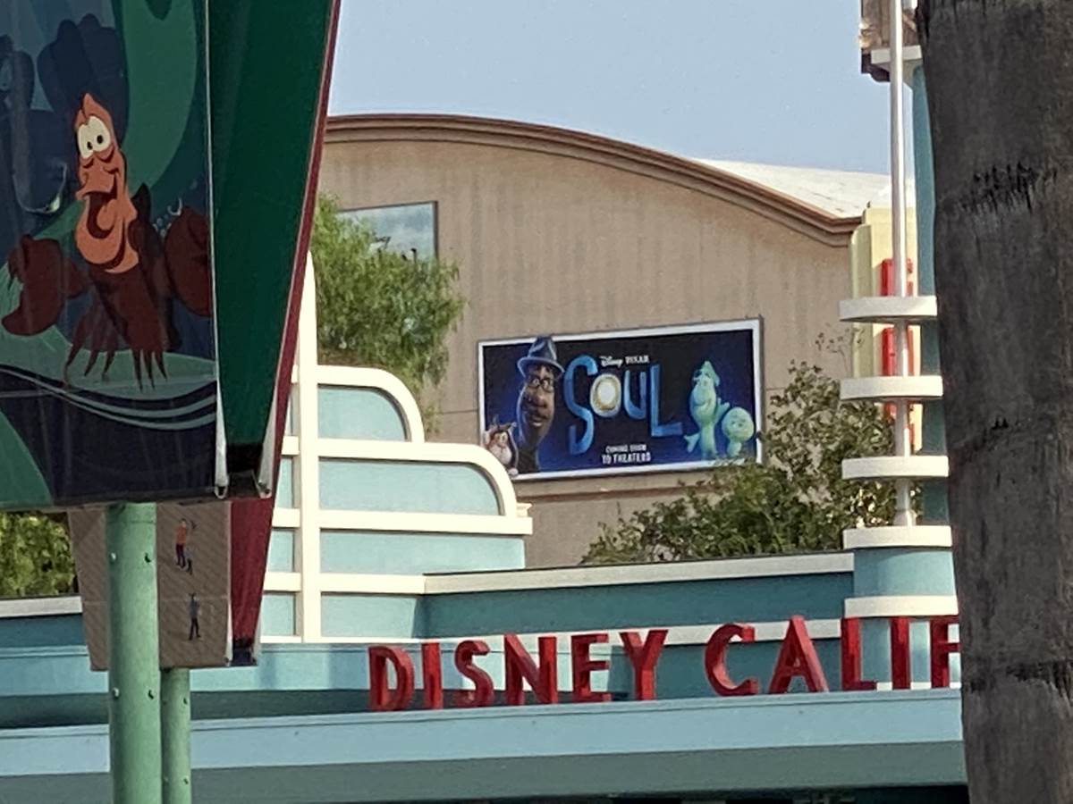 On the other side of the esplanade however, we can get right up to the gates of Disney California Adventure and peer down Buena Vista Street. We also noticed a new billboard for the upcoming Soul on one of the stages of Hollywoodland.