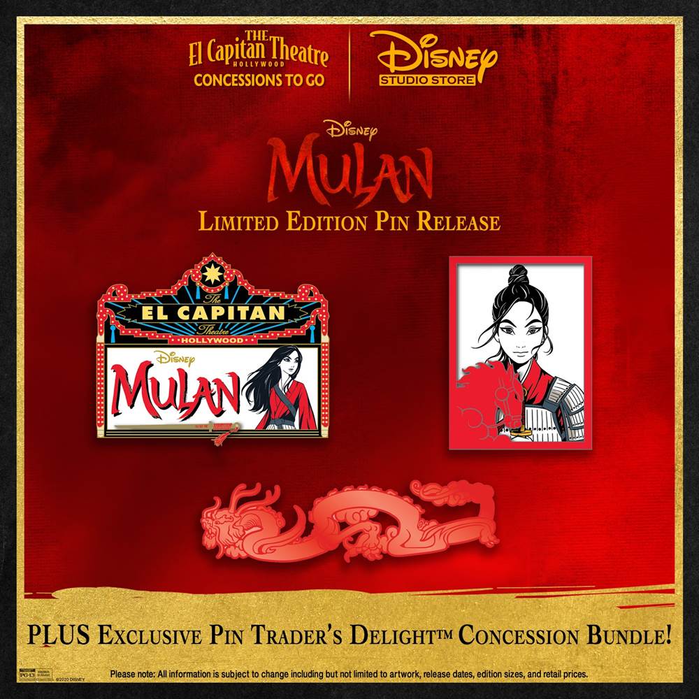 With Disney’s Mulan about to premiere on Disney+ this Friday, the El Capitan Theatre has announced that they will celebrate the release with some special concessions items, exclusive pins and more.