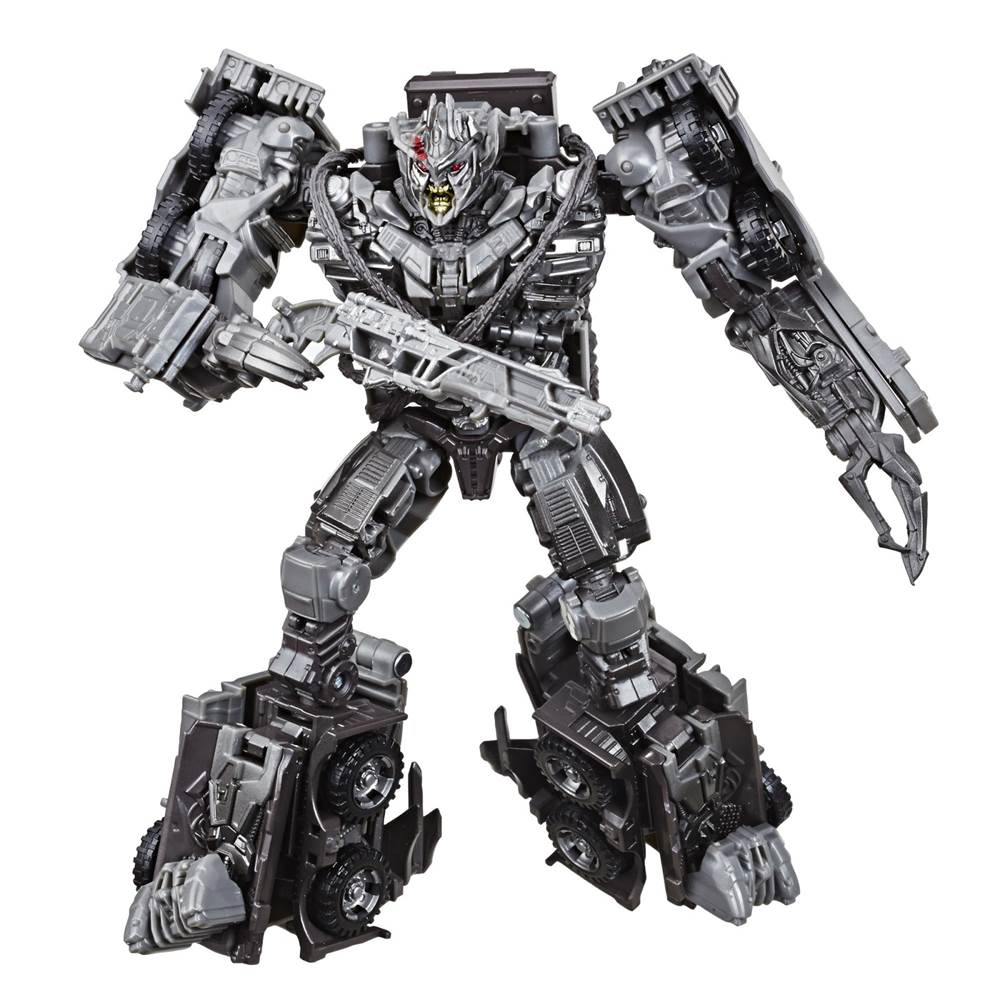 - This Studio Series 48 Leader Class As Seen In Parks Megatron figure features vivid, Universal Studios theme park-inspired deco and converts from robot to truck mode in 30 steps.