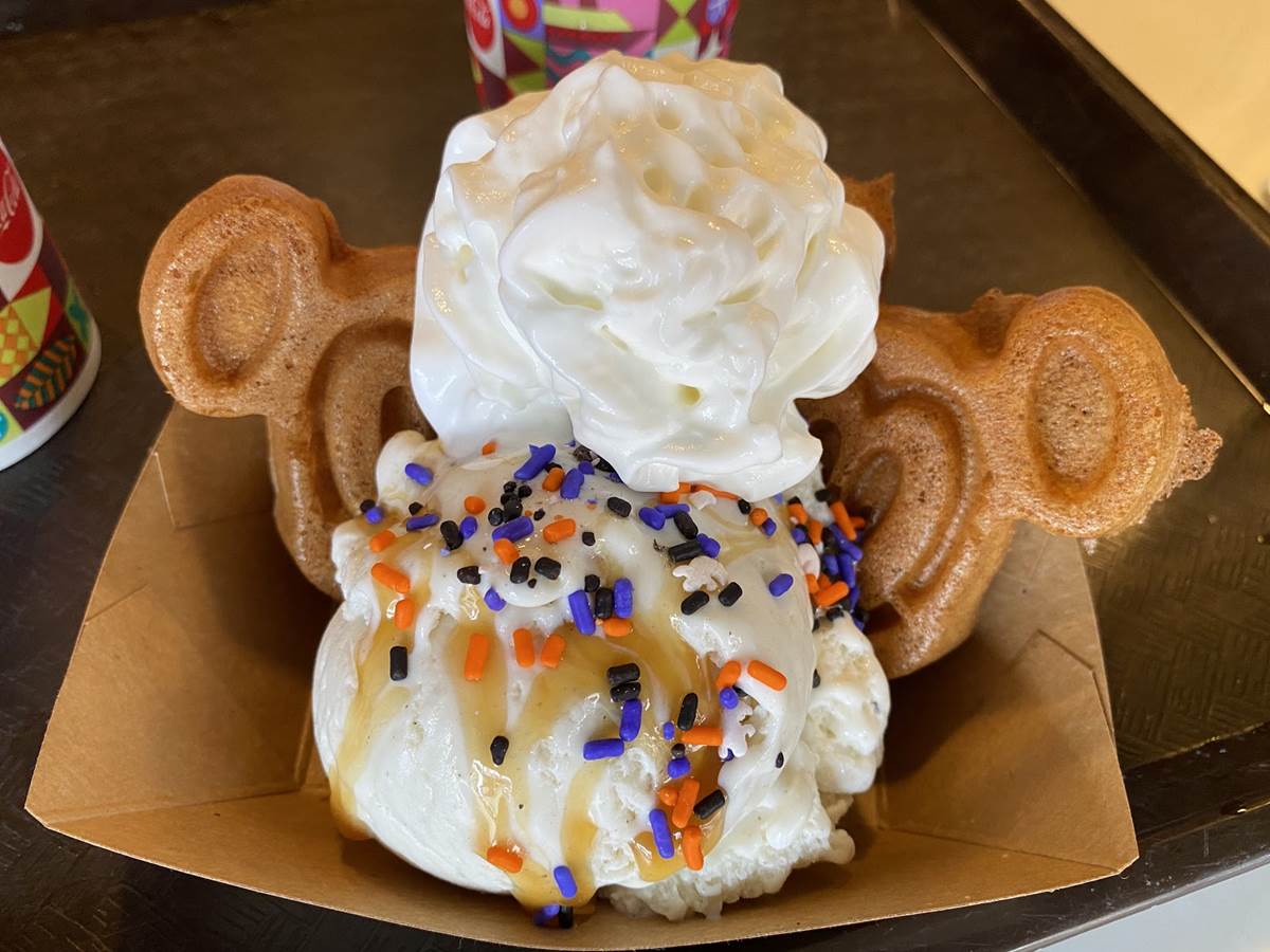 - The Pumpkin-spiced Mickey Waffle Sundae is available for $6.49.
