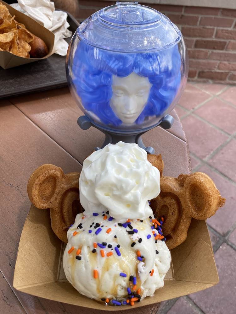 - Also available at Sleepy Hollow is the Pumpkin-spiced Mickey Waffle Sundae, giving guests an option for a delicious fall treat.