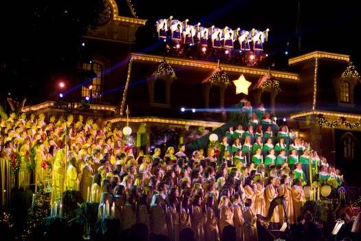 - The beloved annual event features several choir groups and a surprise celebrity narrator as they come together on a stage in front of Disneyland’s train station to tell the story of Christmas.