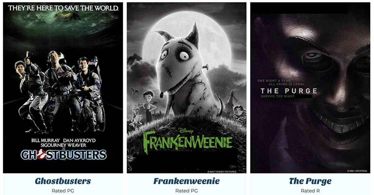 - Tickets include admission to the movie of your choice, and is sure to be a scary good time!