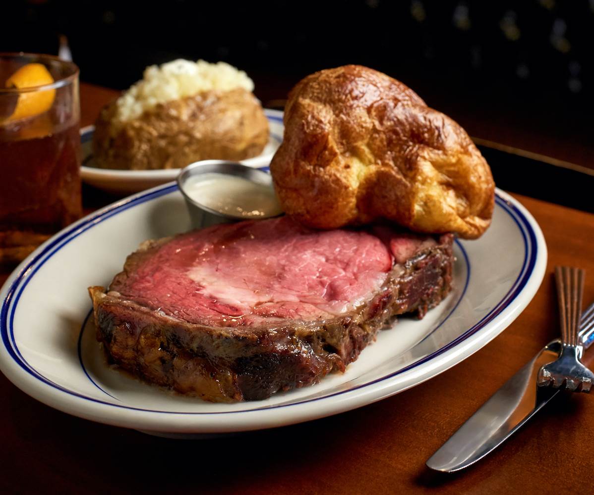 - Drop in for 20% off the Queen Cut Prime Rib – Boneless 14oz prime rib with au jus, horseradish cream sauce, popover, and your choice of baked potatoes, mashed potatoes, or fries