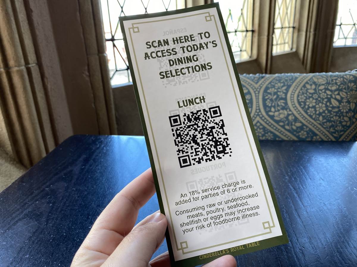 Similar to Garden Grill at EPCOT, Guests are given an autographed character card at the end of their meal, with artwork that reflects the tile design inside Cinderella Castle.