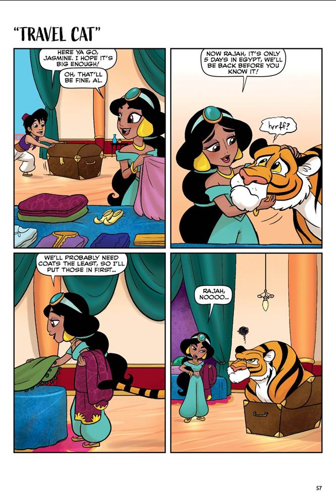 - “Travel Cat” featuring Jasmine, Aladdin, and Rajah
