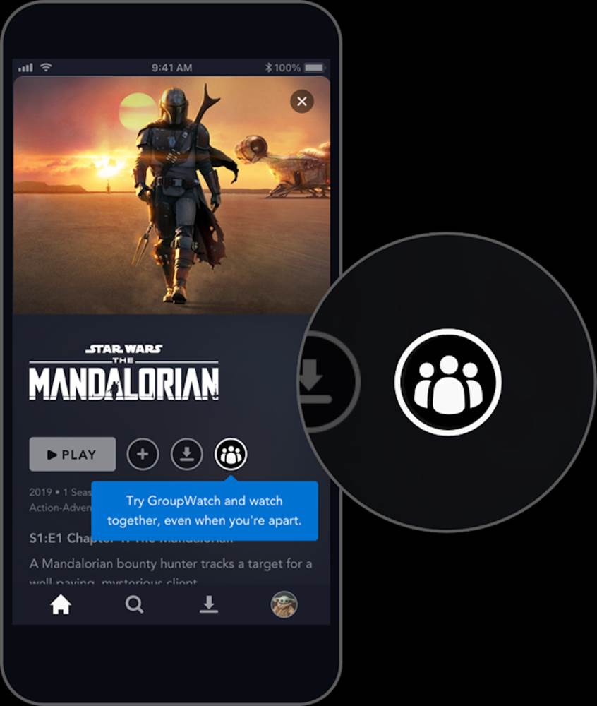 - Subscribers can launch the experience through the GroupWatch icon found on the Details page of series and movies from the extensive library on Disney+.