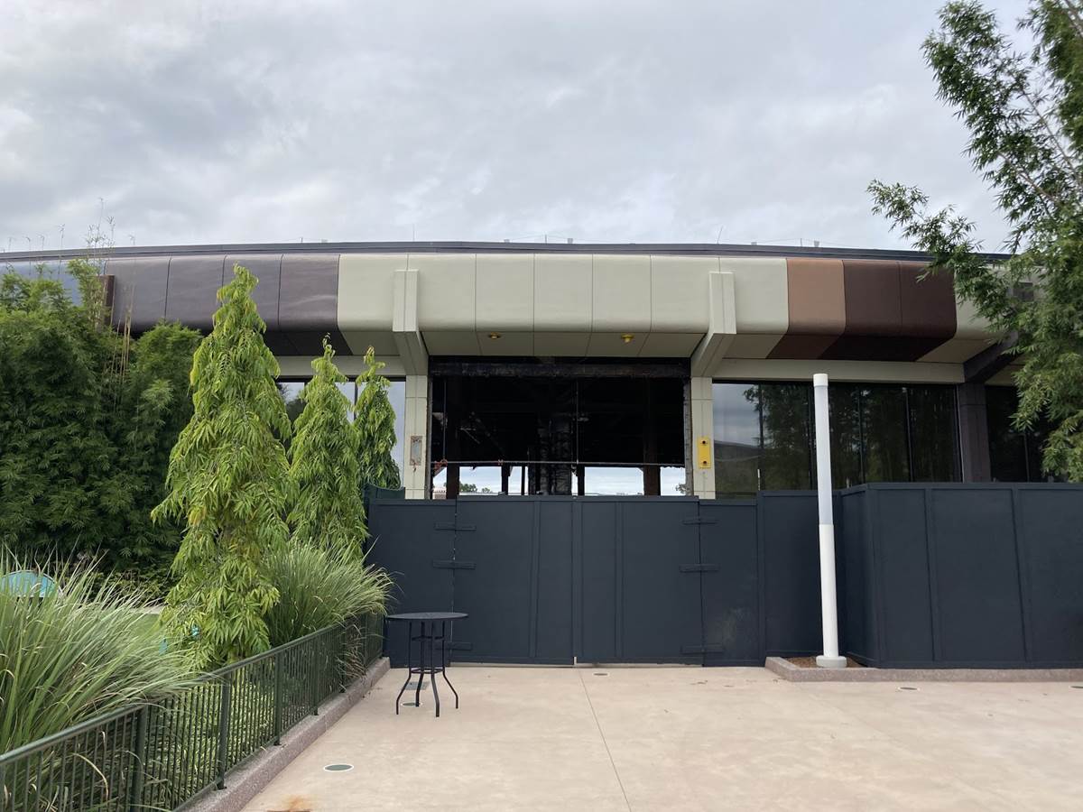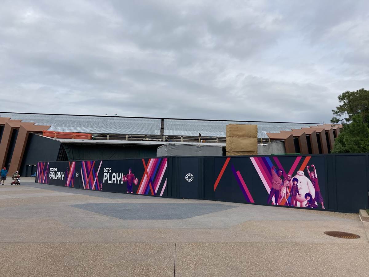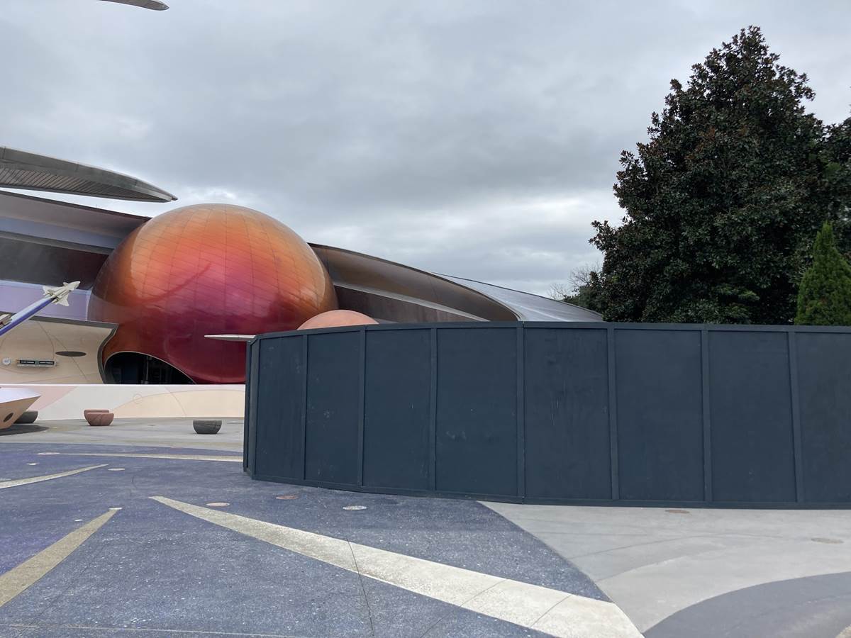 The new restaurant that we’ve been waiting for as part of an expansion to the Mission: SPACE pavilion, Space 220, is nearing completion, with these walls currently covering the marquee and entrance to the restaurant that will take us 220 miles above the Earth and into a space station for a dining experience that can only be described as “out of this world.”