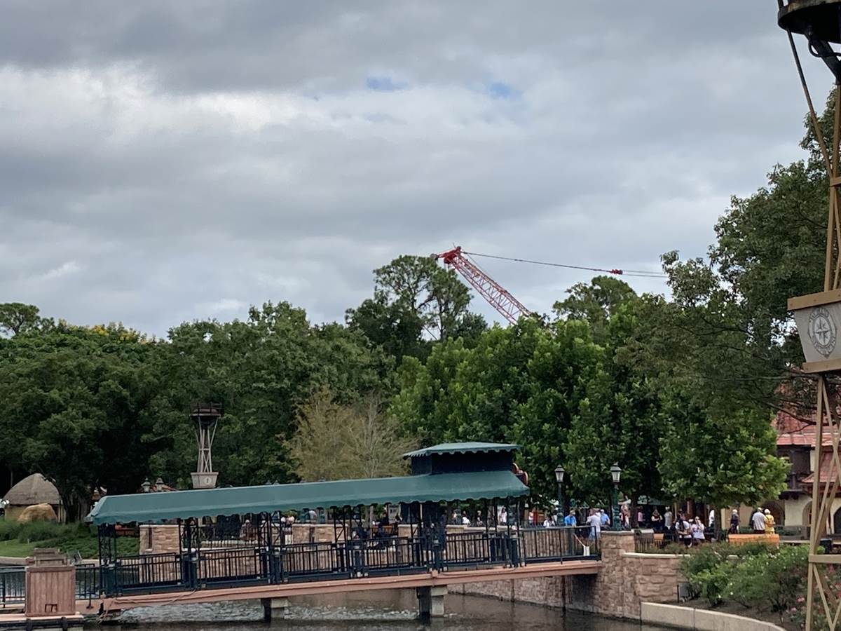 Harmonious is an all-new nighttime spectacular that is being created for EPCOT’s World Showcase Lagoon. The new show will celebrate how Disney music inspires people around the world, and will feature massive floating set pieces, custom-built LED panels, choreographed moving fountains, lights, pyrotechnics and lasers. It was also touted as not only being the largest fireworks spectacular ever to come to EPCOT, but also the largest fireworks spectacular ever created for a Disney Theme Park when it was announced. While we couldn’t get a great look at some of the show’s barges and floating pieces, we can see the active crane work helping the construction on the backstage dry dock. There is no official opening date set for this show.