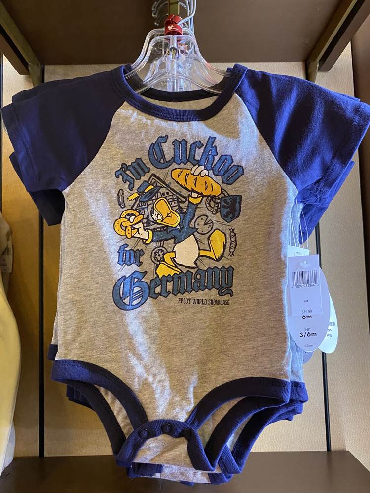 Donald Duck is in on the fun, too, with a t-shirt and toddler onesie with the irritable duck delighting in some German favorites.