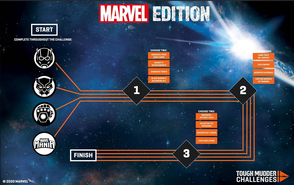 - The four overall challenges for Tough Mudder: Marvel Edition include: