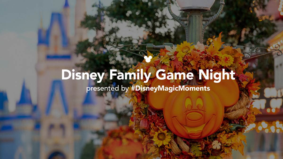 - Beginning at 7 p.m. ET on Friday, October 30th, viewers can have some Disney fun by participating in LIVE game play during the Halloween edition of Disney Family Game Night. The night will feature trivia, puzzles, guessing games and more.