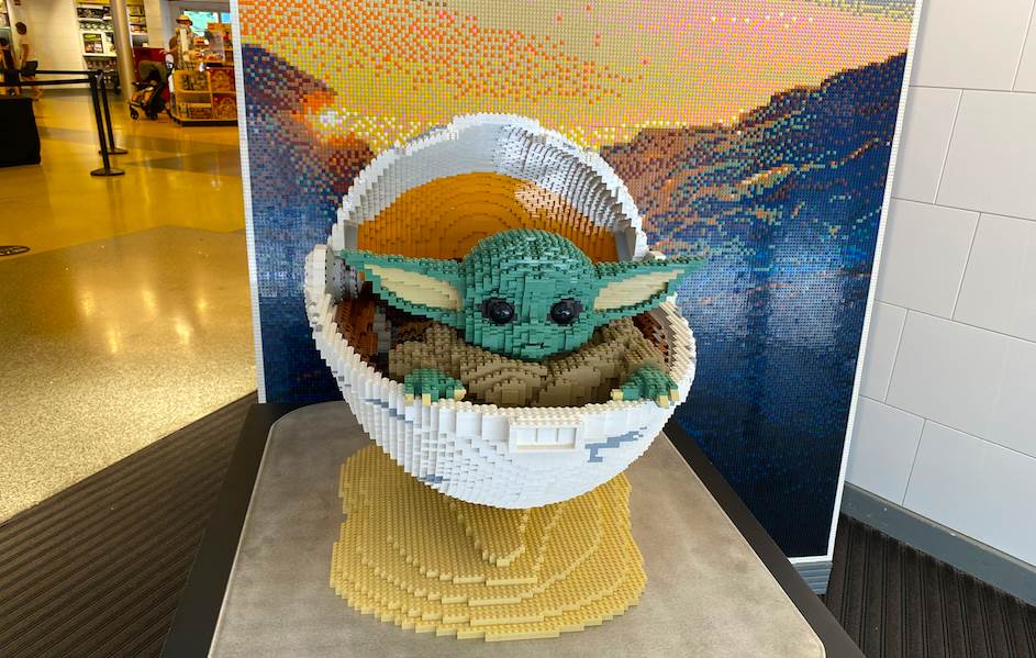 - Just inside the entrance of The LEGO Store at Disney Springs, guests will now find a sculpt of The Child in his carrier.