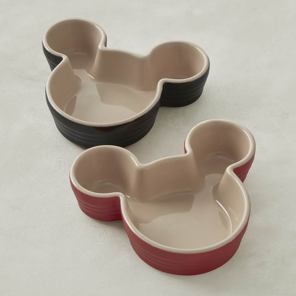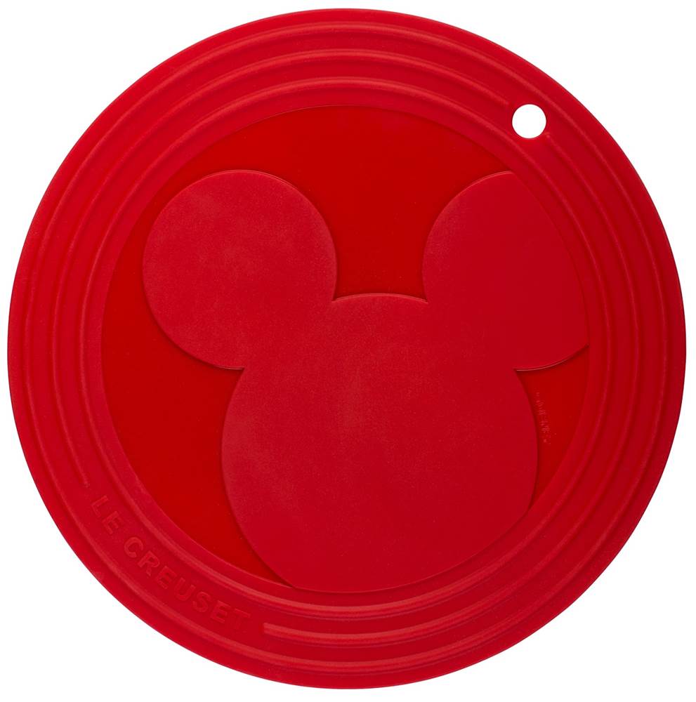 This stylish red 4 1/2-qt. Dutch oven has Mickey silhouette on the patten and on the handle and comes with two ramekins (one red, one black) and a silicone trivet. Suggested retail price is $334.95, but Williams-Sonoma sells it for $299.95. Click here to order.