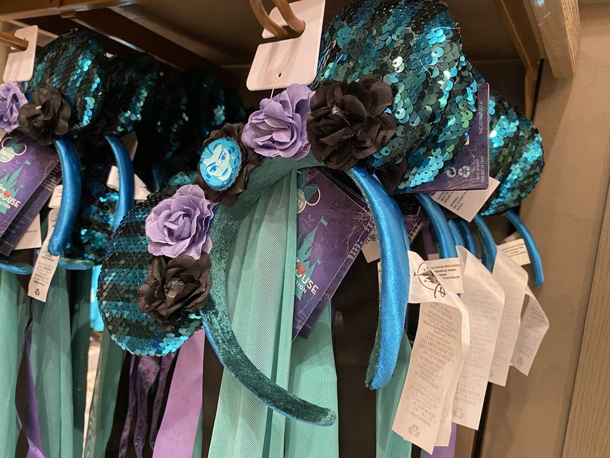After two hours in line, we were finally able to get inside the shop to check out what remained of the Haunted Mansion additions to the Minnie Mouse: The Main Attraction collection. By that time, the new mug had already sold out, but the plush, hip pack by Loungefly, pin set and Minnie Mouse ear headband were all still available.