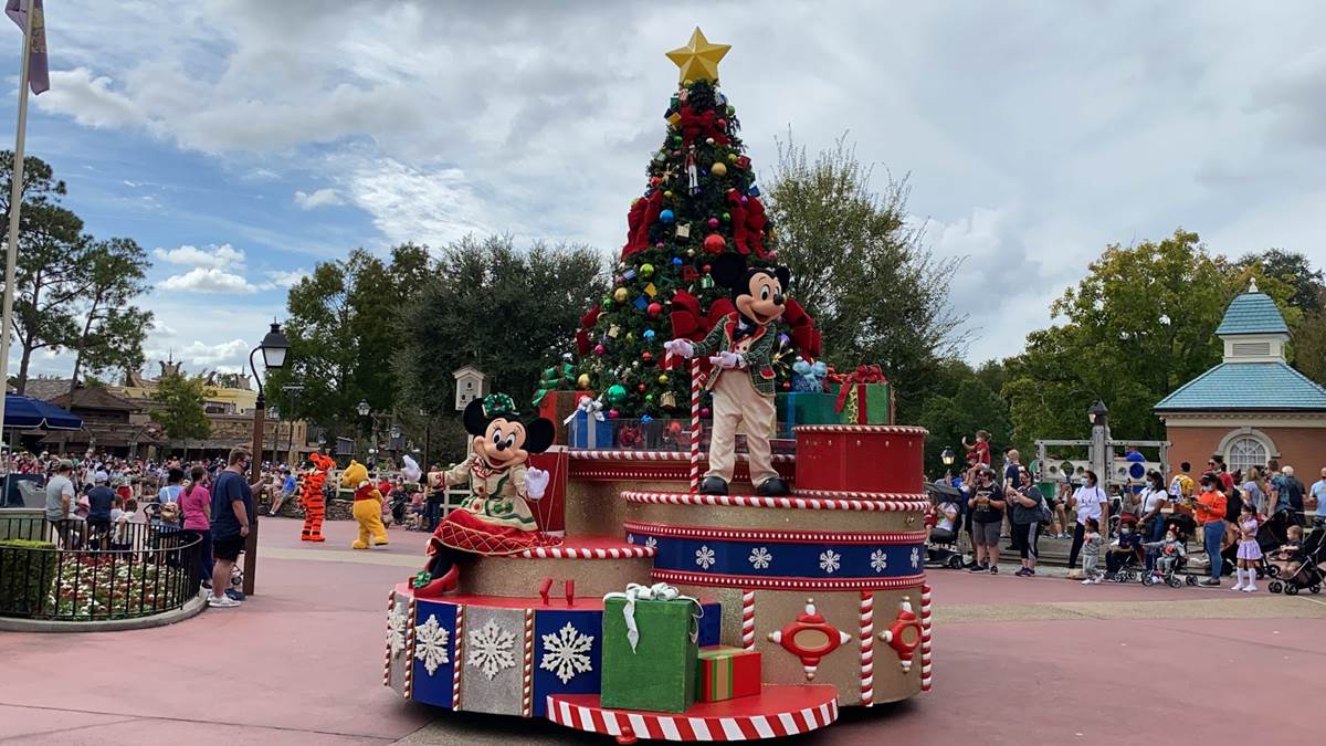 - Once inside the park, guests will of course see the giant Christmas tree right in th middle of Town Square, surrounded by more holiday decorations which lead guests down Main Street, U.S.A.