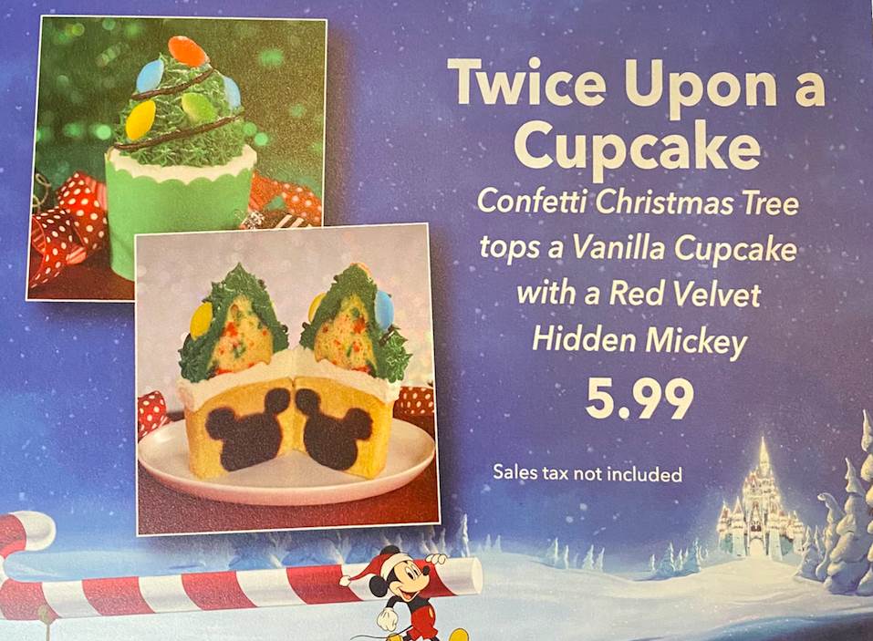 - This cleverly-named treat consists of a confetti Christmas tree atop a vanilla cupcake with a red velvet hidden Mickey.