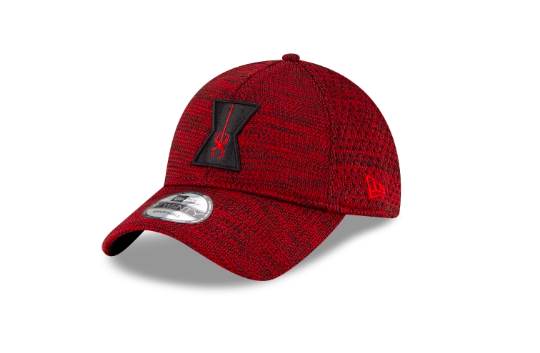 - BLACK WIDOW SPIDER 9TWENTY ADJUSTABLE CAP - This hat features a red marled knit fabrication with Black Widow hourglass embroidery at the front panels and a tab with an Avengers logo above the adjustable buckle closure at the rear.