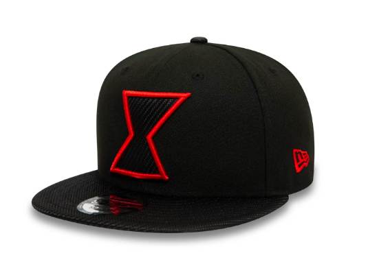 - BLACK WIDOW CARBON 9FIFTY SNAPBACK - This hat features faux carbon fiber inside of red hourglass embroidery at the front panels, a carbon fiber inspired graphic on the visor, Black Widow wordmark at the right-wear side and a snapback closure at the rear. Additional details include a gray undervisor.