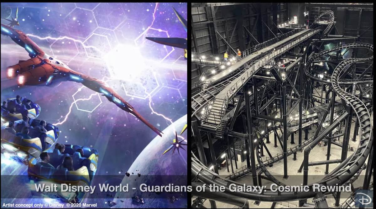 - Work also continues on Guardians of the Galaxy: Cosmic Rewind – the family-friendly “storytelling coaster” featuring a groundbreaking ride system with vehicles that rotate 360 degrees and can even do a reverse launch!